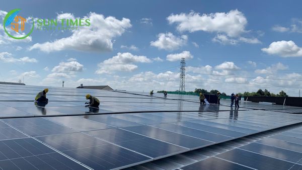 Hệ thống điện mặt trời do Sun Times thi công đã hoàn thiện hơn 60%. Đội ngũ kỹ thuật vẫn đang miệt mài làm việc mỗi ngày để đảm bảo tiến độ và chất lượng công trình.